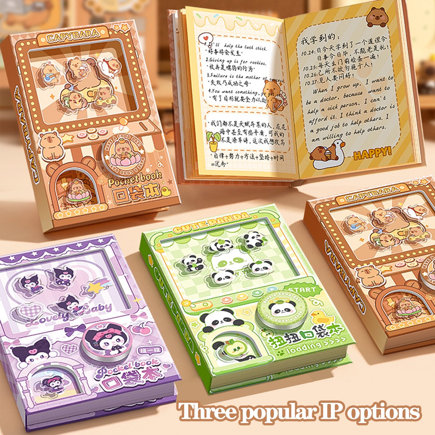 It offers 3 popular cute IP themes: Capybara, Magic Townlet, and Panda Pangda. The built-in gashapon mechanism lets you “twist” to get a cute little acrylic pet , turning journaling into an experience full of gameplay and surprises.