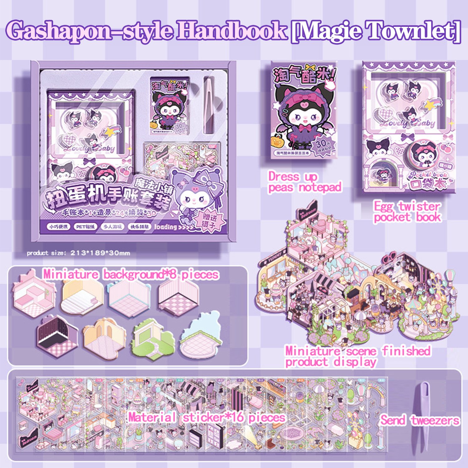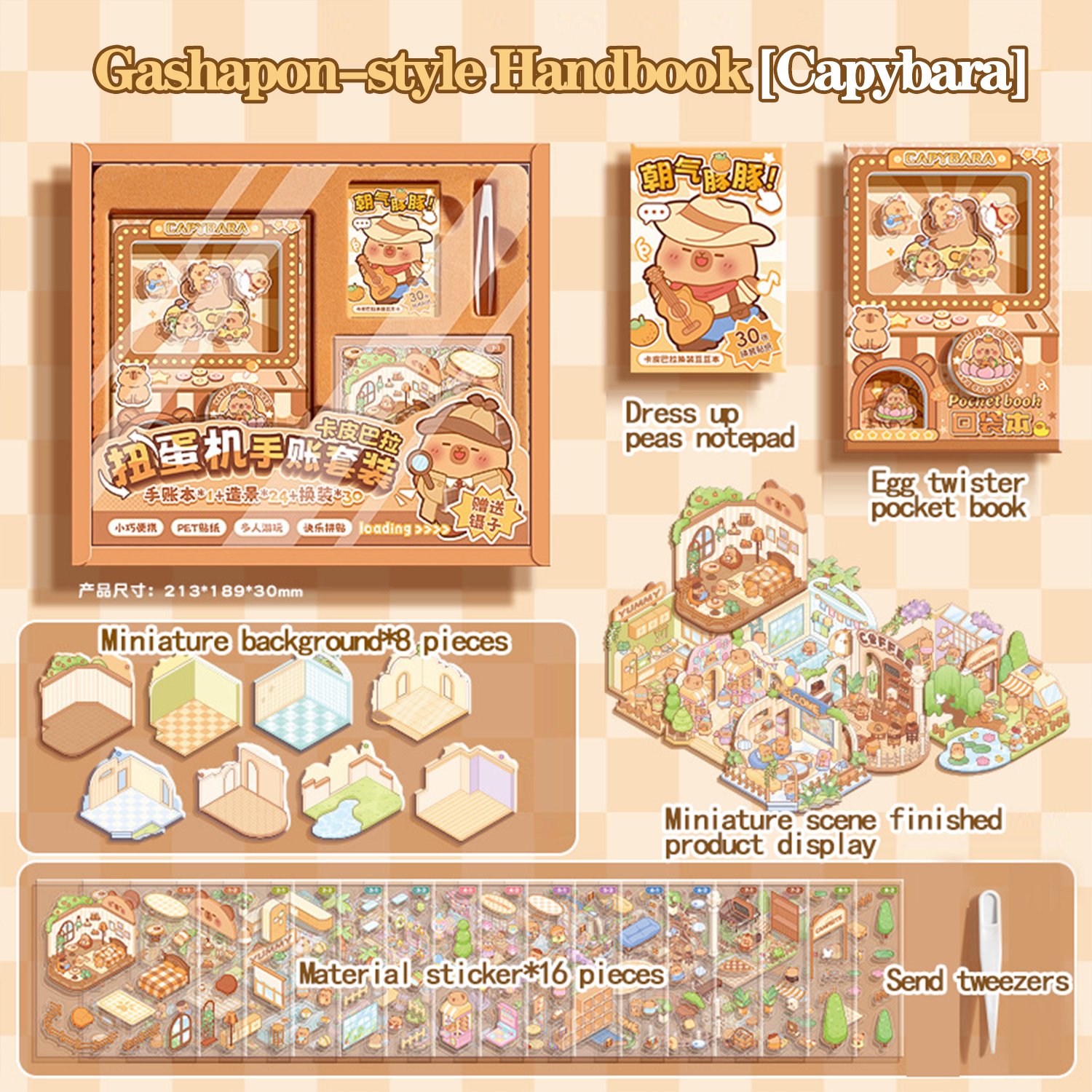 This creative set integrates a pocket notebook, decorative stickers, mini scene background boards, and a fun gashapon-inspired design. It serves as a one-stop solution for journaling, decorative crafting, and adding interactive fun to stationery use.