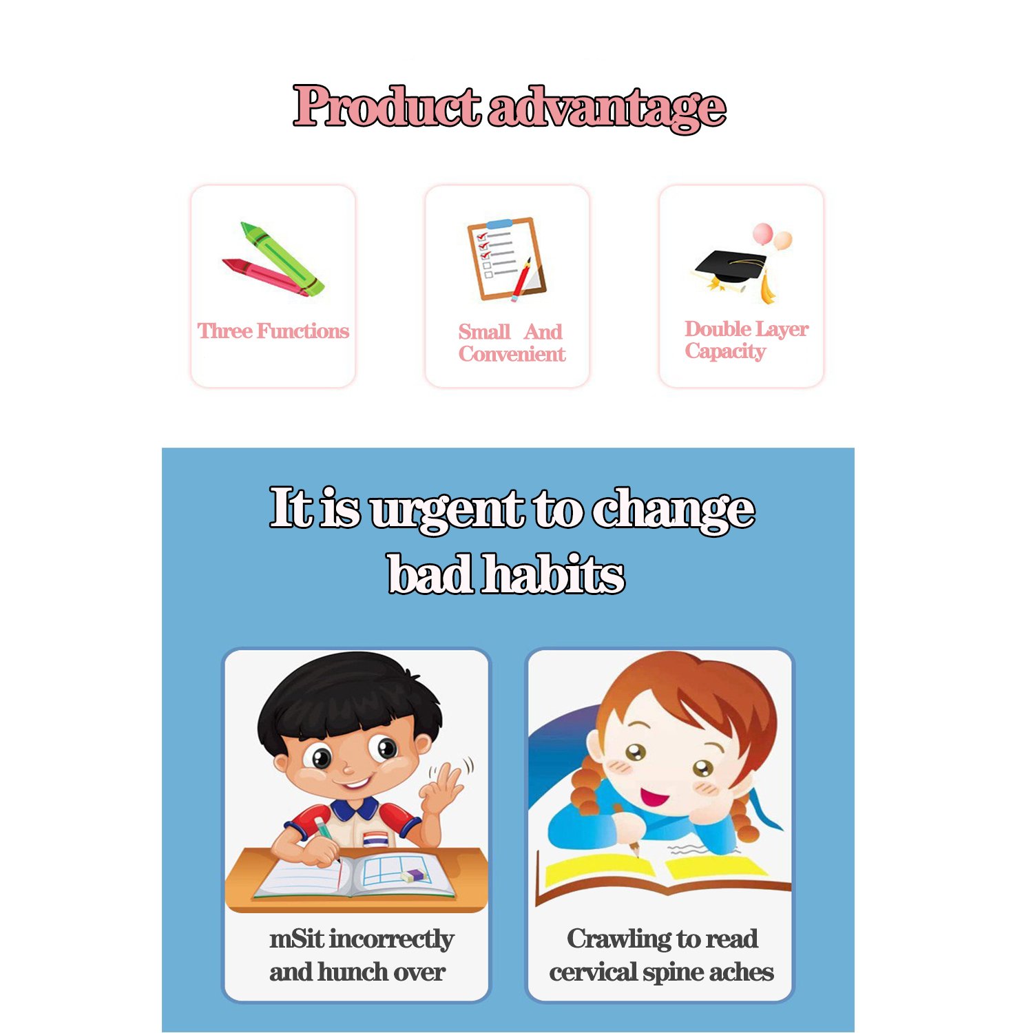 The double-layer pencil case is deeper than I expected¡ªfits my markers, pens, and even a small ruler. The book stand holds my textbook at the perfect angle, so I don¡¯t have to lean in.
